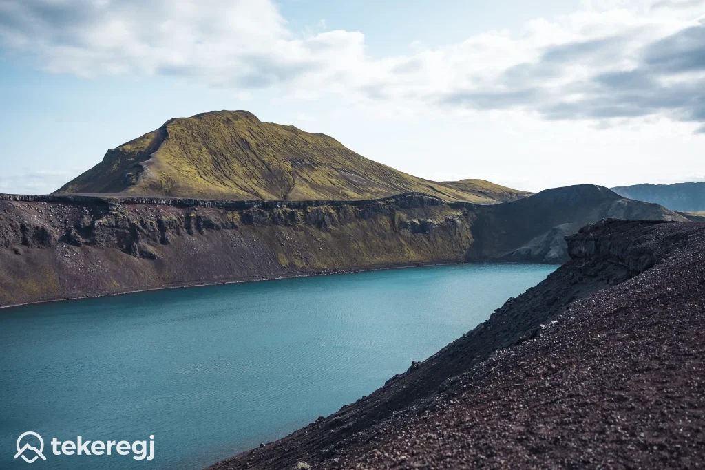 Bláhylur Izlandon: csodálatos mélykék krátertó Landmannalaugar közelében