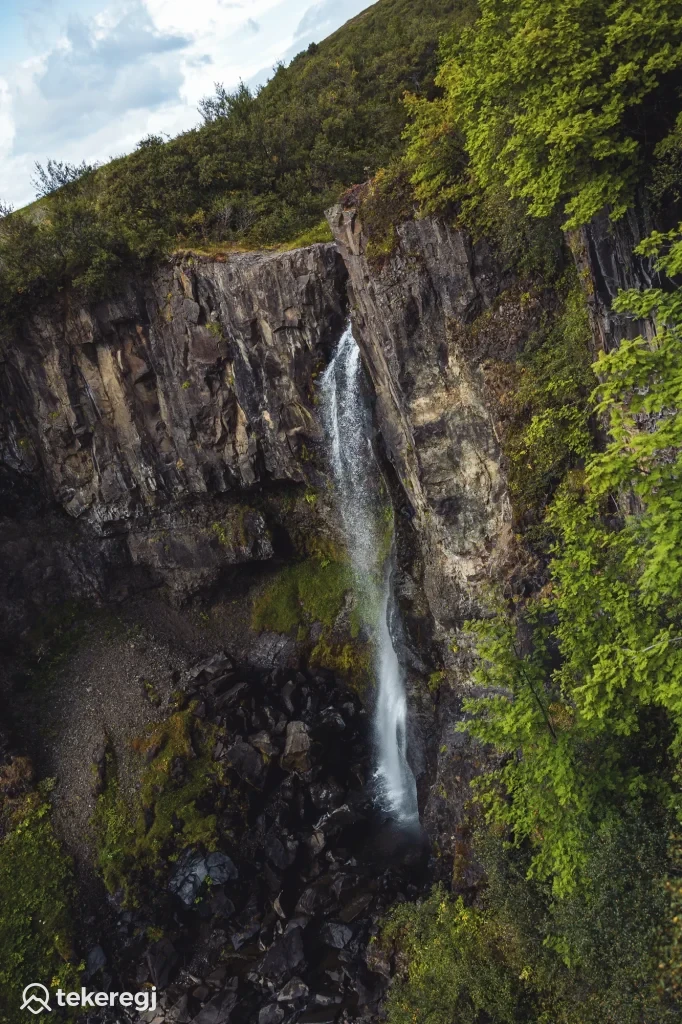 Svartifoss Izlandon: fekete bazaltoszlopok között zúduló vízesés a Skaftafellben