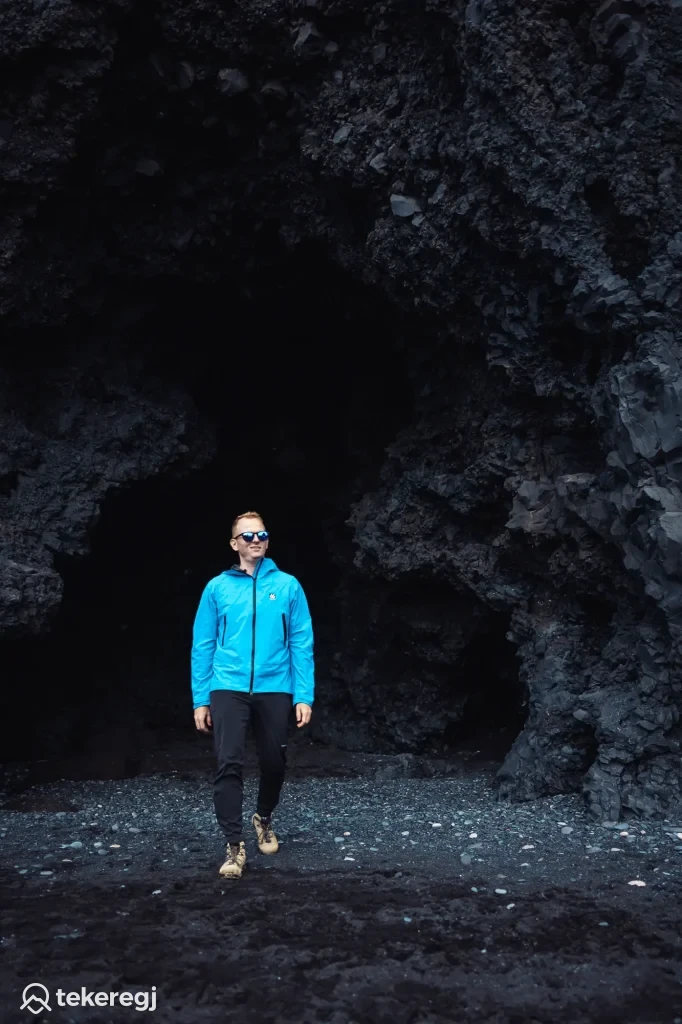 Reynisdrangar: bazalt sziklatűk a fekete homokos part